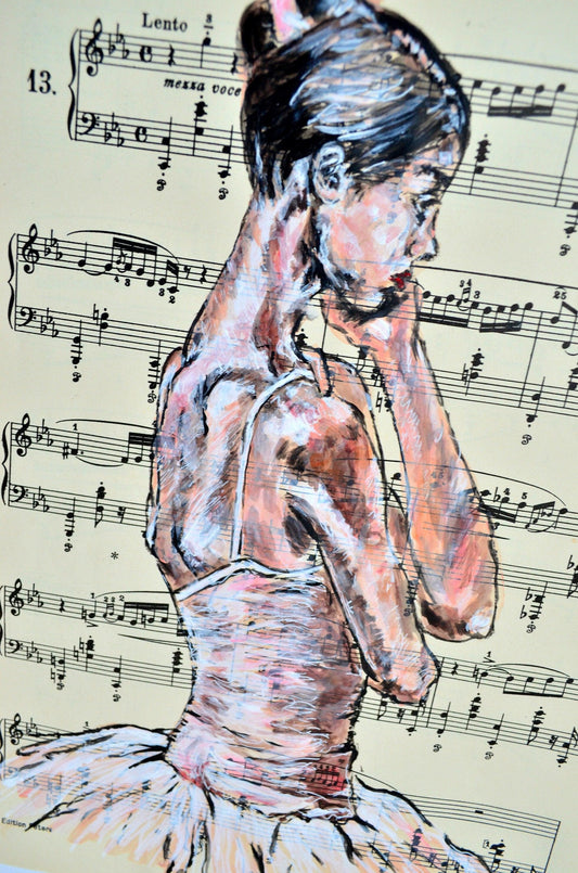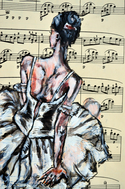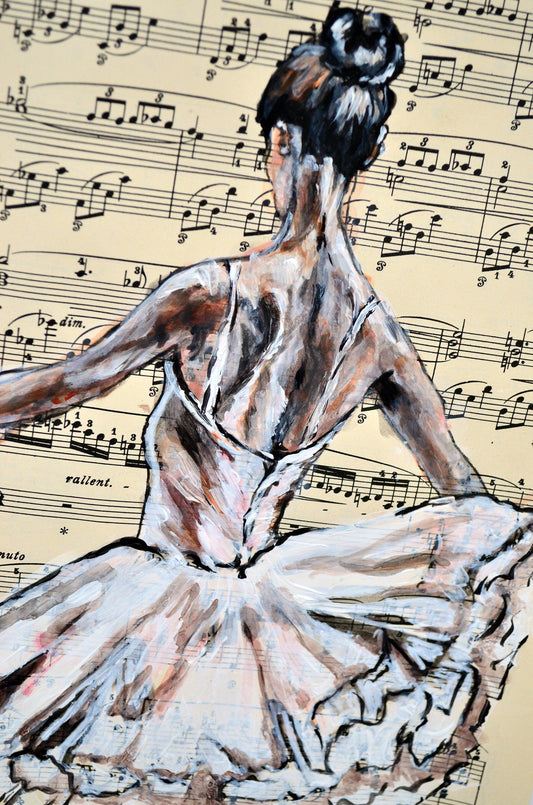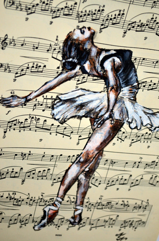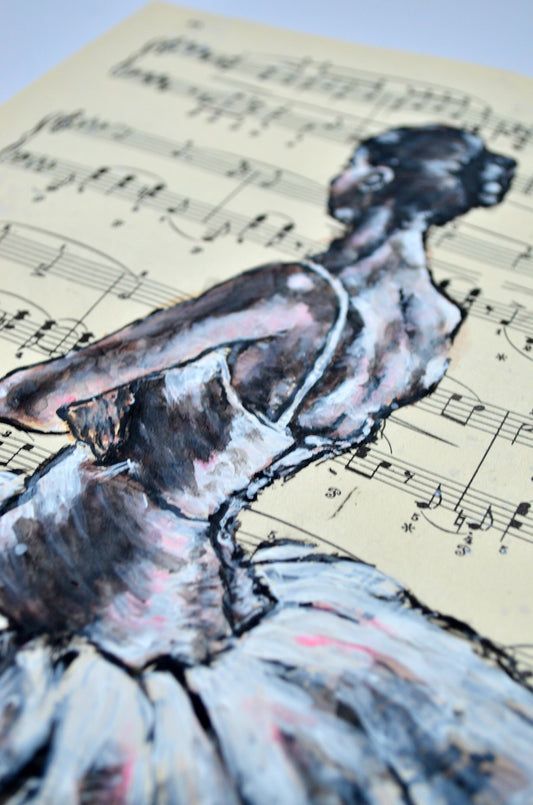 Framed Ballerina XXV - Original Painting on Vintage Sheet Music Page