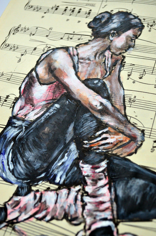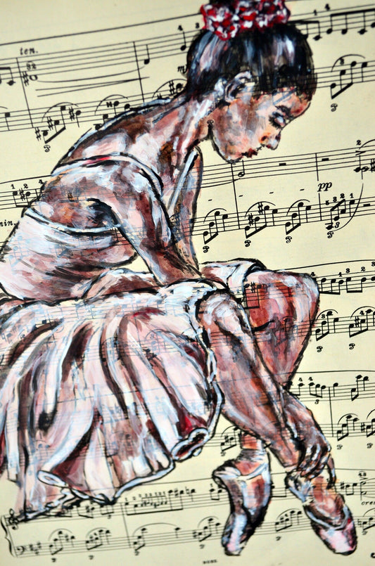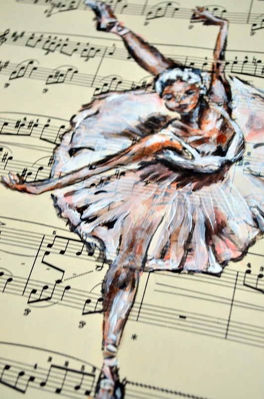 Framed Ballerina III - Original Painting on Vintage Sheet Music Page