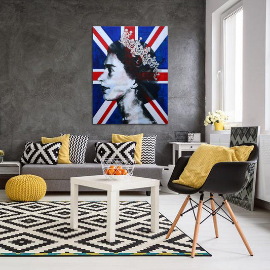 Queen Elizabeth II Union Jack Original Painting Art on XL Deep Canvas