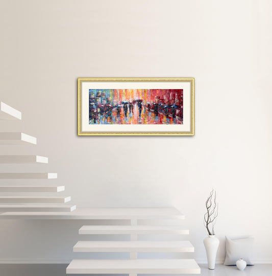 Neon Dreams in the Rain - Original Painting Art on Deep Canvas