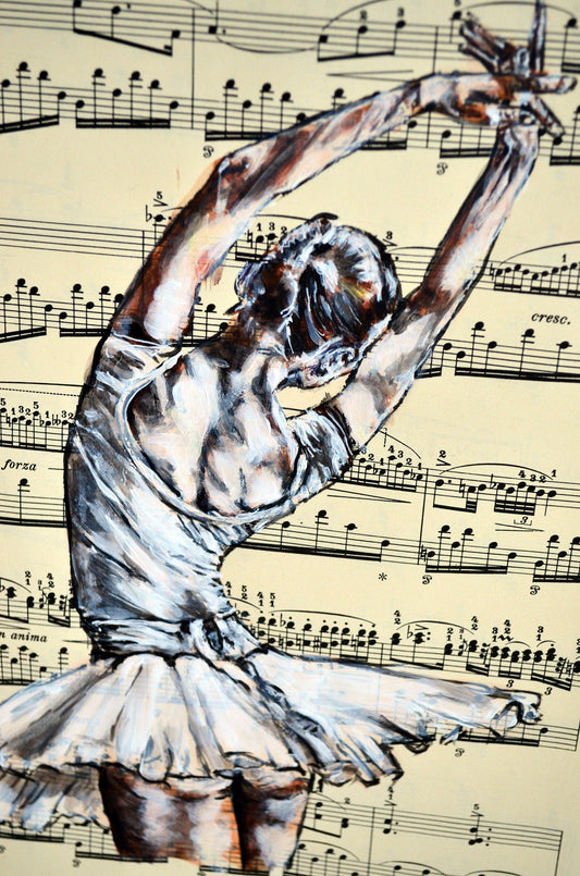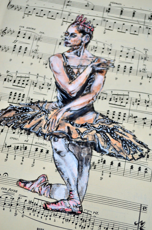 Framed Ballerina XXXVI - Original Painting on Vintage Sheet Music Page