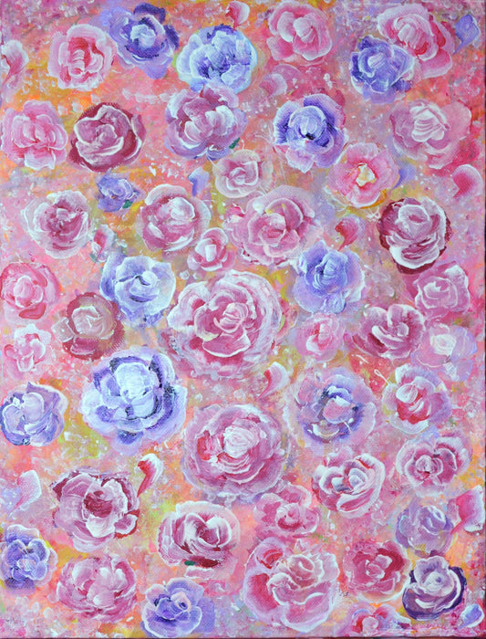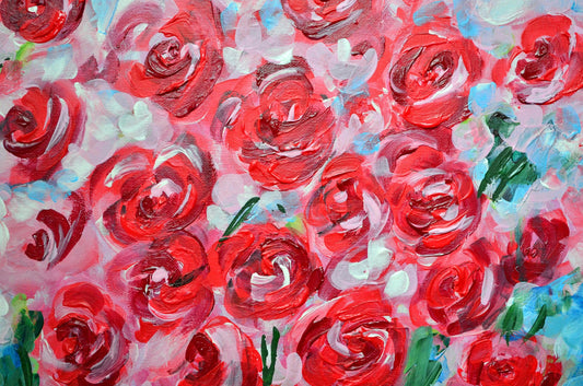 Bouquet of Pink Rosses - Original Floral Painting Art on Canvas