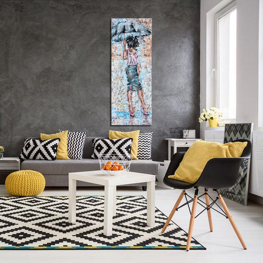 Blue Umbrella - Original Fine Art Painting on Deep Canvas