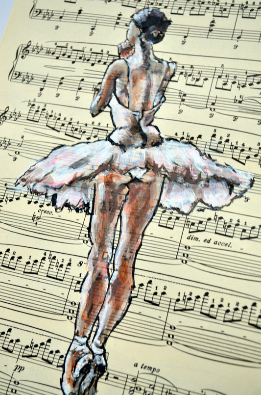 Framed Ballerina L - Original Painting on Vintage Sheet Music Page