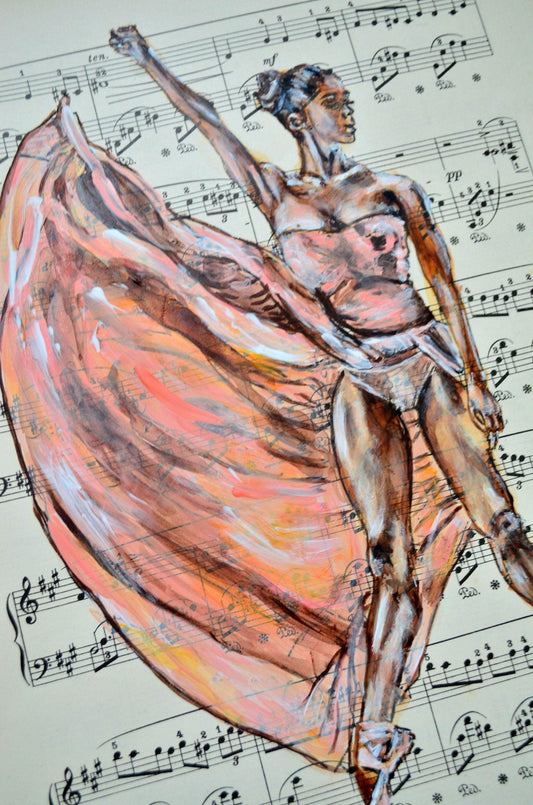 Framed Ballerina LI - Original Painting on Vintage Sheet Music Page