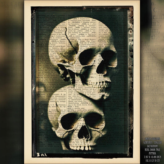 Tower of Skulls - Victorian Gothic Art on Vintage Dictionary Page
