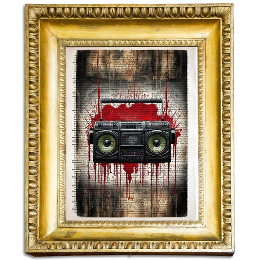 Bloody Melodies: Abstract Boombox Unraveling Haunting Music