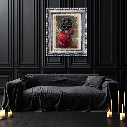 Boho Skull Spring - Instant Download Collage Dark Art Dictionary Gothic Art Printable Home Decor Floral Skull Poster Wall Art Gift