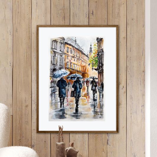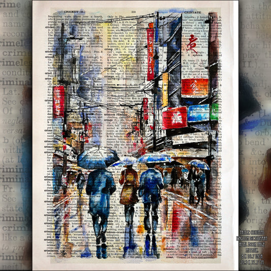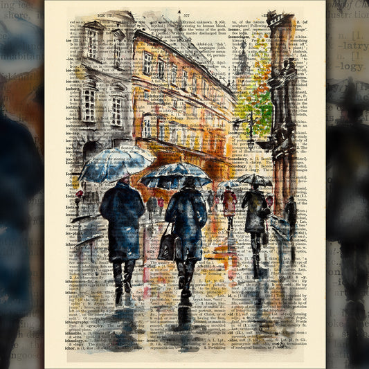 Rainy Day in Krakow - Limited Edition Art Print on Original Dictionary Page