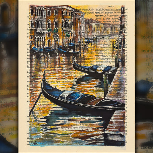 Venice at Sunset - Limited Edition Art Print on Original Dictionary Page