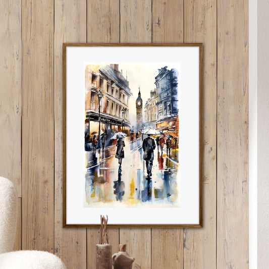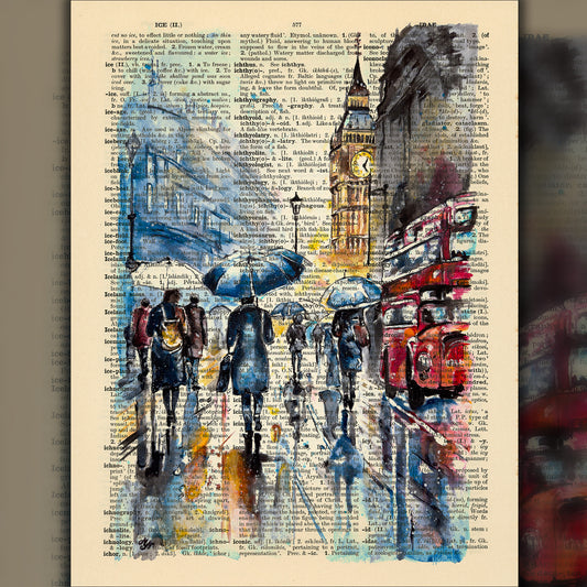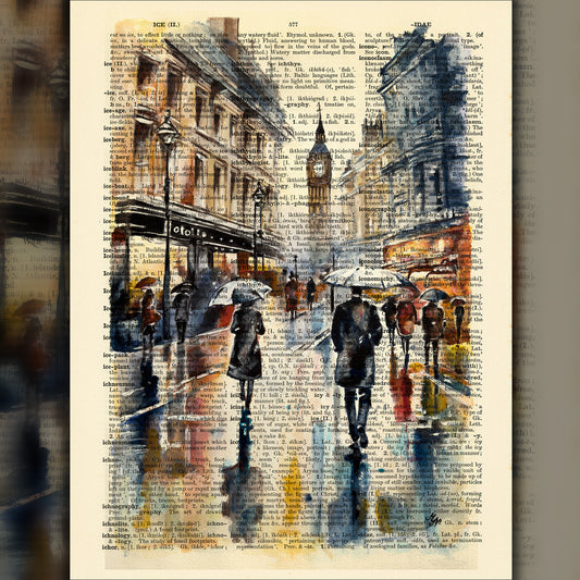 Rainy Day in London - Limited Edition Art Print on Original Dictionary Page