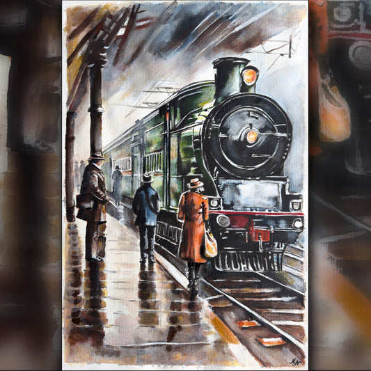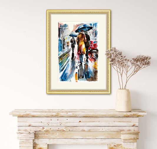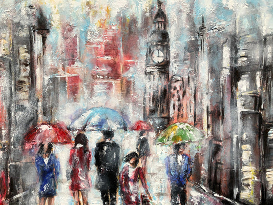 Walking in the Foggy London - Original Painting Art on Large Canvas