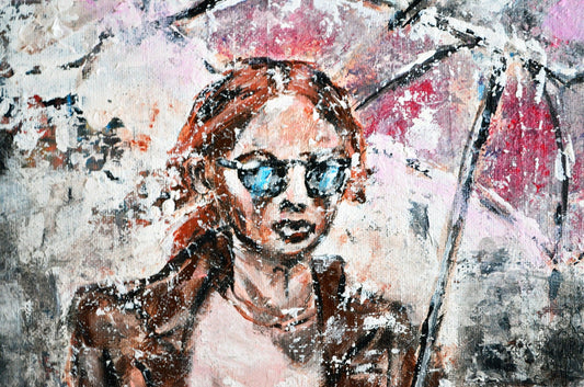 Pink Umbrella - Original Fine Art Painting on Deep Canvas