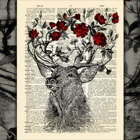 Deer Antler Flowers - Animals Funny Art Print on Vintage Antiques Page