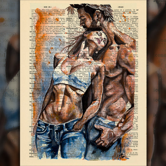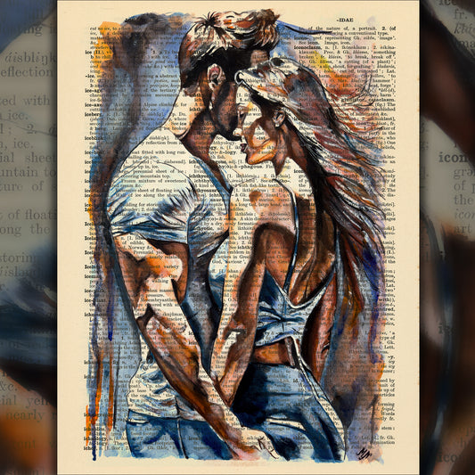 Romantic Moments - Limited Edition Art Print on Original Dictionary Page