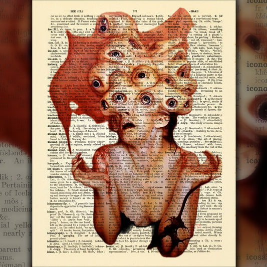 Rocky Predator in Petals - Limited Edition Print on Antique Vintage Dictionary Page