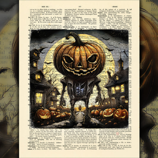Halloween - Limited Edition Print on Antique Vintage Dictionary Page