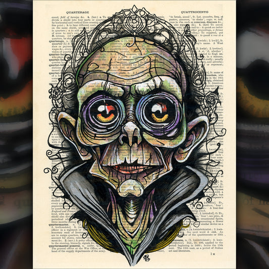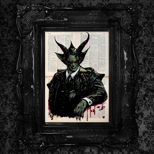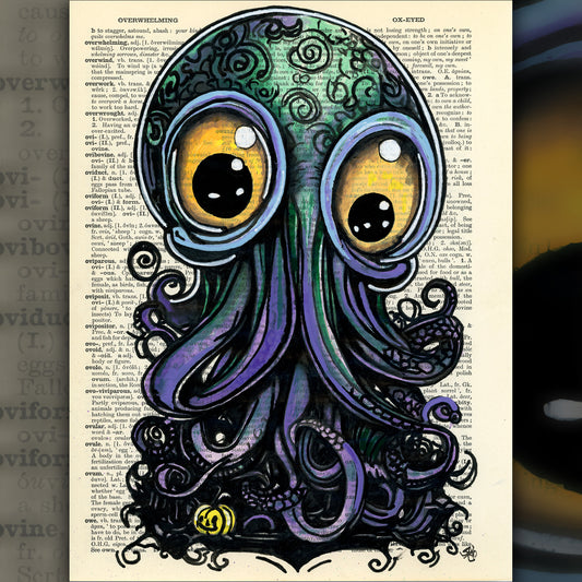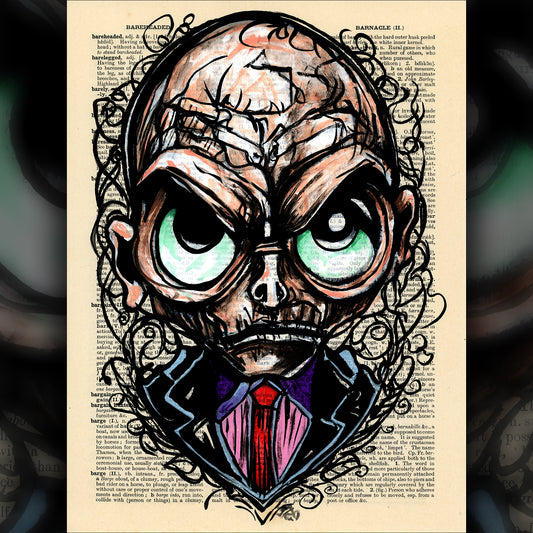 Cthulhu in a Suit - Original Ink Drawing Art on Dictionary Page