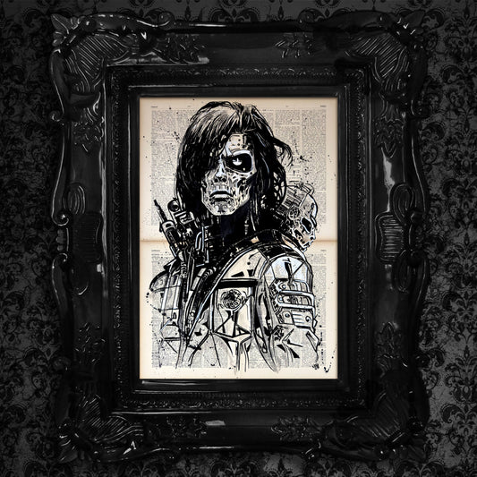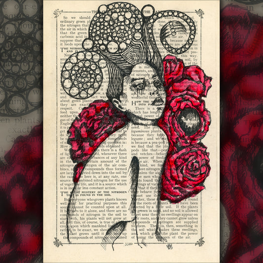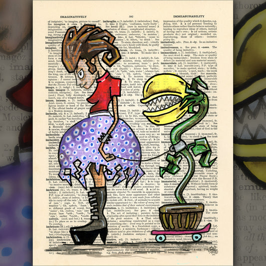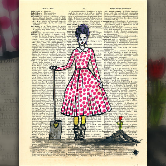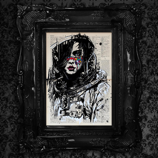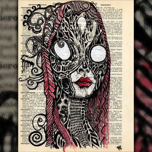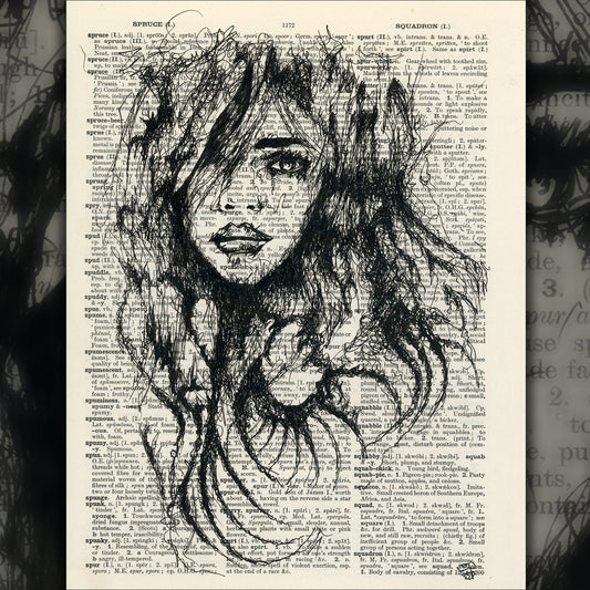 Melancholy - Original Ink Drawing Art on Dictionary Page
