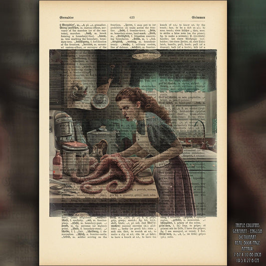 Kraken Clan - Victorian Gothic Art on Vintage Dictionary Page