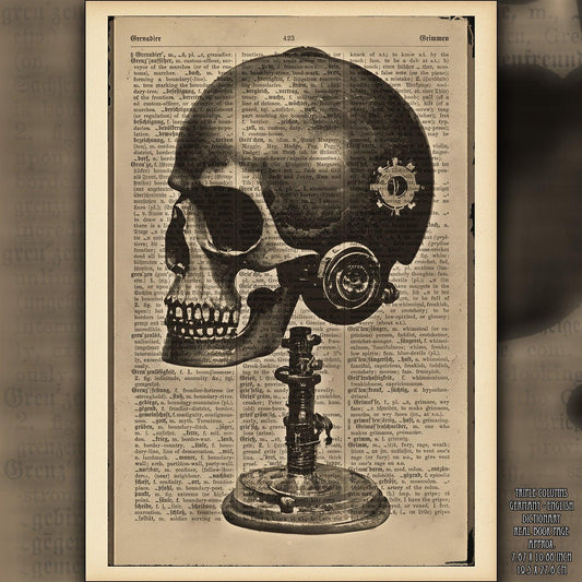 Skull Marvels - Victorian Gothic Art on Vintage Dictionary Page