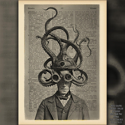 The Dreaded Octo-Men - Victorian Gothic Art on Vintage Dictionary Page