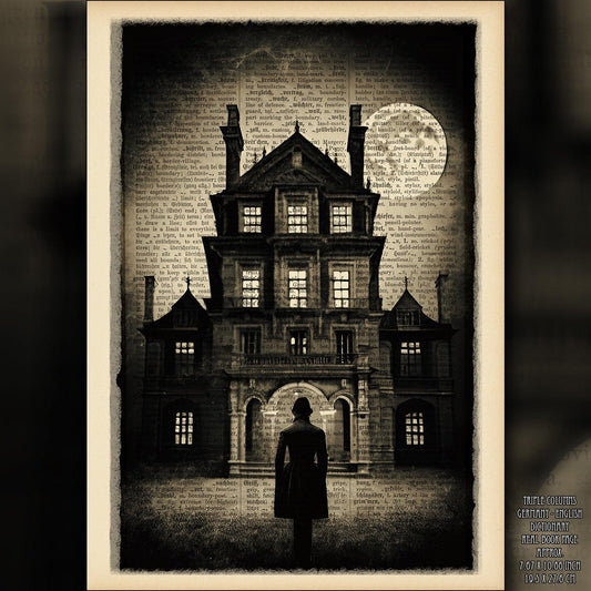 Mysterious Mansion - Victorian Gothic Art on Vintage Dictionary Page