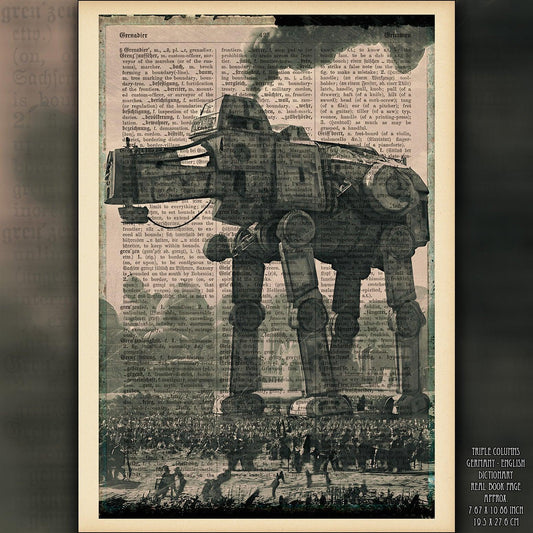 Steampunk AT-AT - Victorian Gothic Art on Vintage Dictionary Page