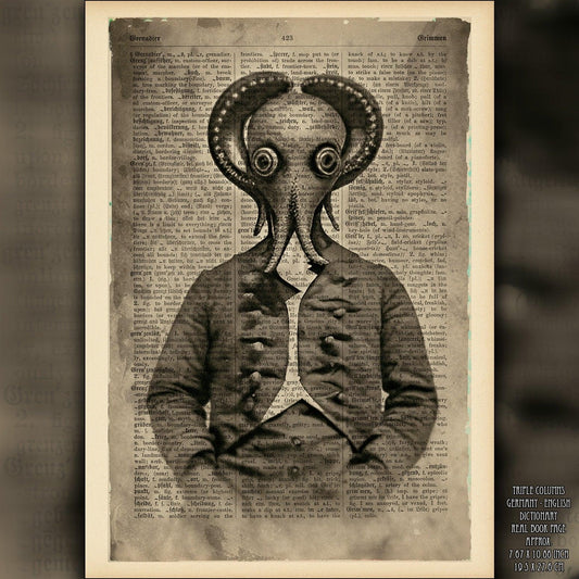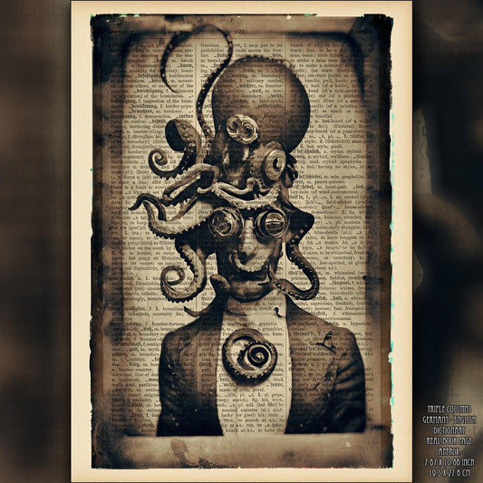 Headman Kraken - Victorian Gothic Art on Vintage Dictionary Page