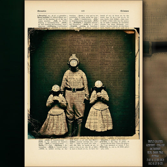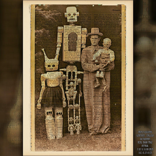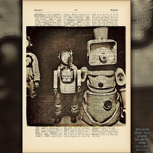 Fancy Robot Family - Victorian Gothic Art on Vintage Dictionary Page
