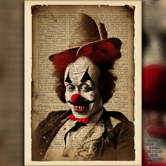Clown Daffy - Victorian Gothic Art on Vintage Dictionary Page