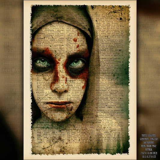 Bloody Nun - Victorian Gothic Art on Vintage Dictionary Page