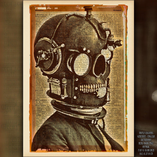 Mechanical Skull - Victorian Gothic Art on Vintage Dictionary Page