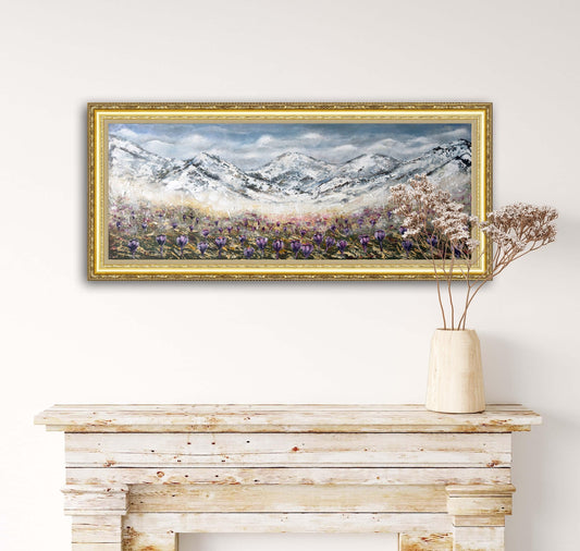 Springtime Crocus Dance - Original Landscape Painting Art on Deep Canvas