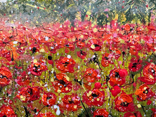 The Majesty of Red Poppies - Original Abstract Painting Art on Deep Canvas