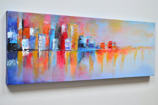 Fantasy Skyline - Original Abstract Painting Art on Deep Canvas