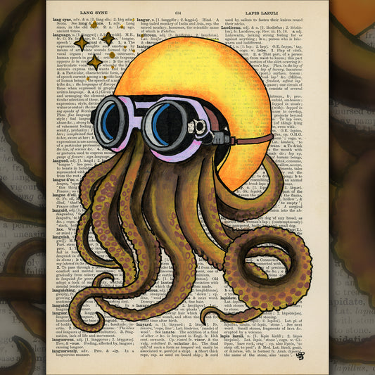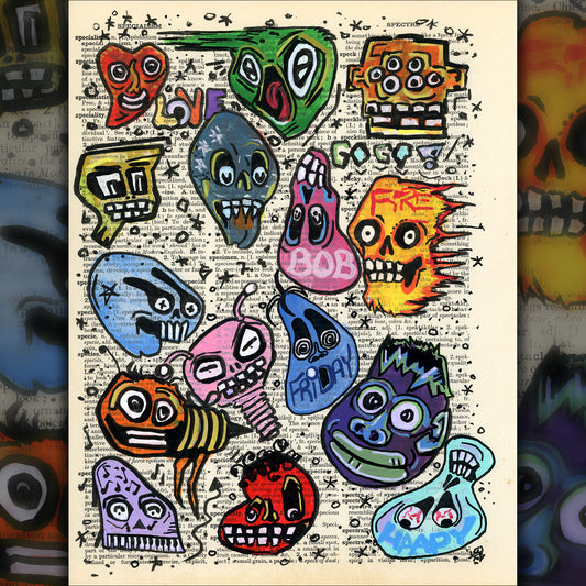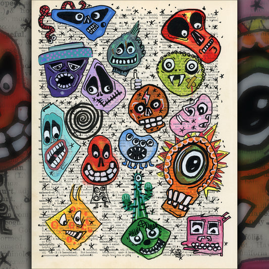 Red Chick - Original Painting Art on Vintage Antique Dictionary Page