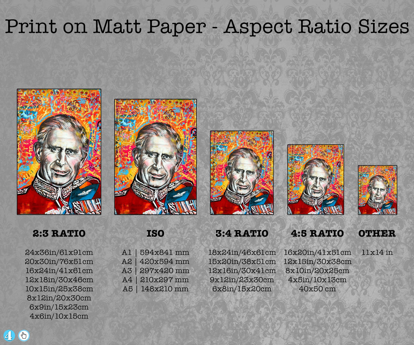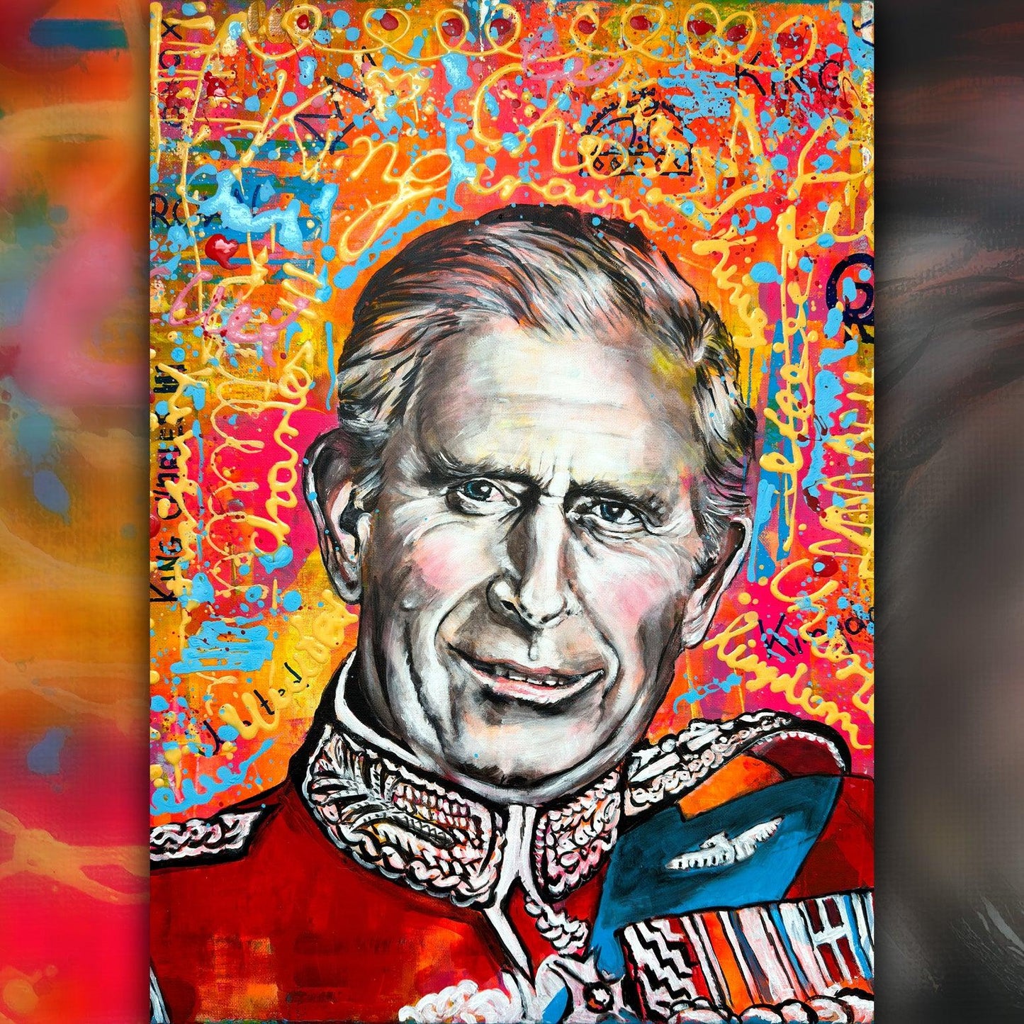 Order this original print by Misty Lady (Małgorzata Nierobisz) - "King Charles III" today and bring a modern, artistic touch to your space, adding a vibrant and contemporary accent to any interior.