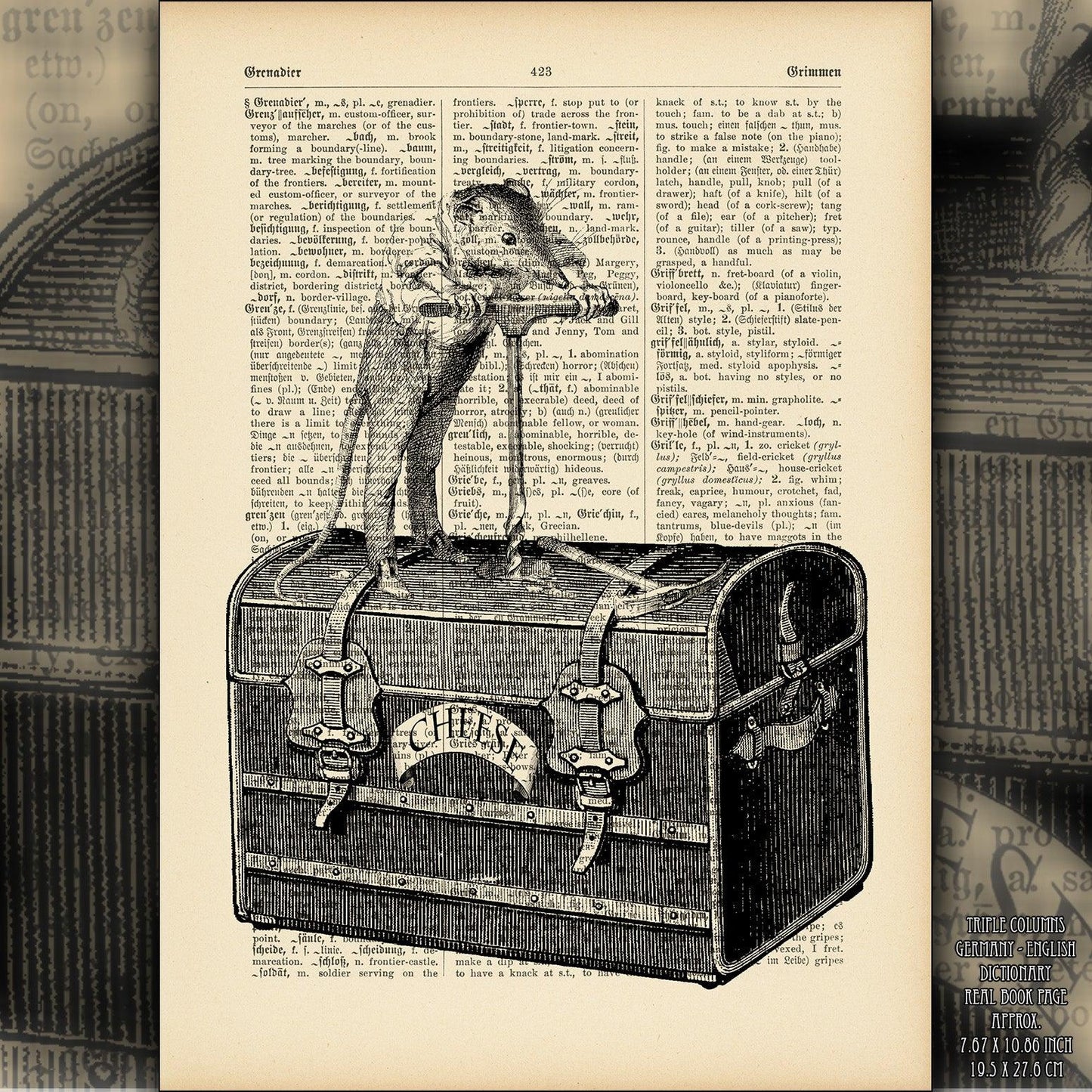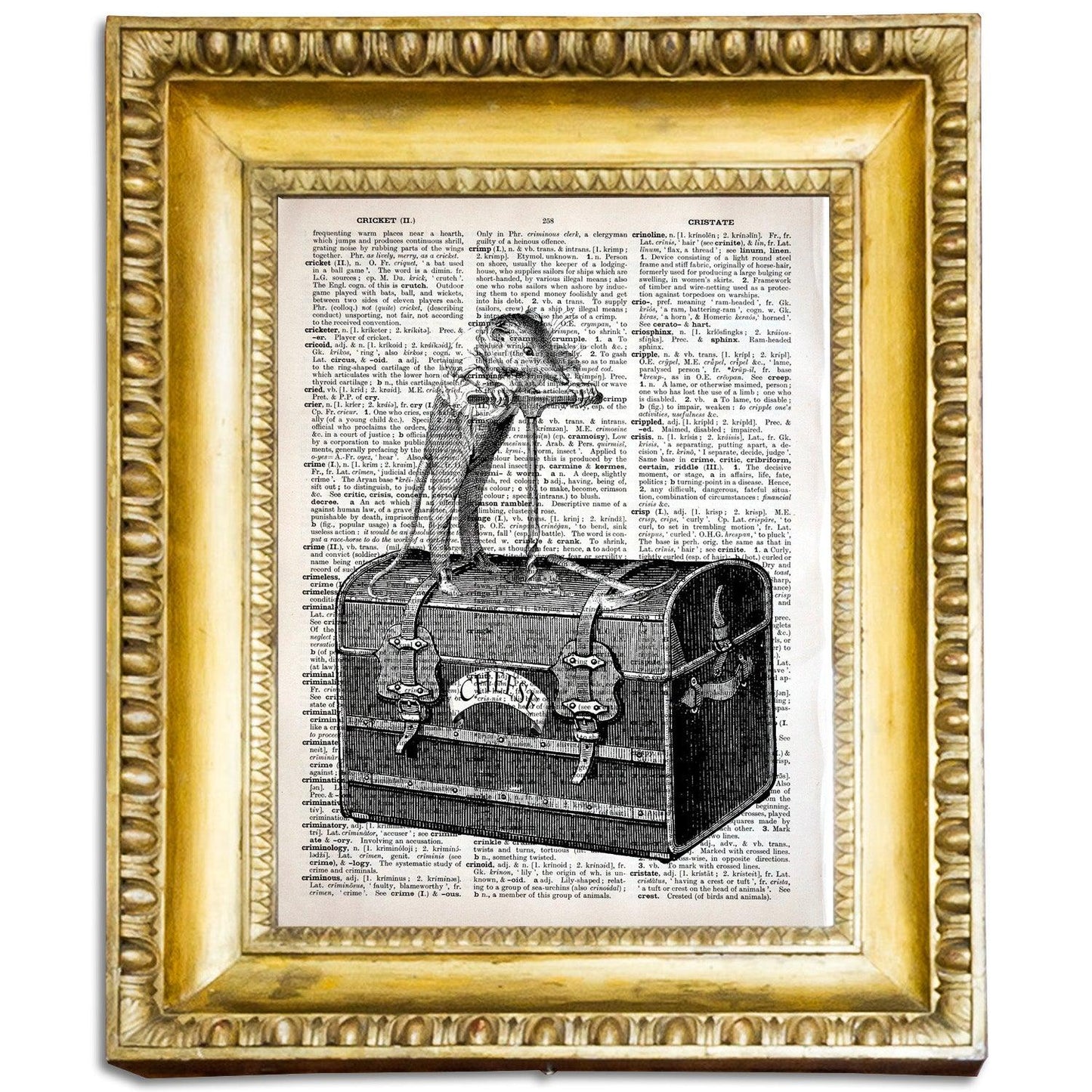 Mouse Treasure - Literary Poster Gift, Victorian Dictionary Art Poster with Funny Animal Characters